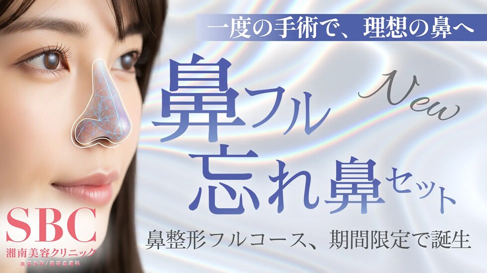 SBCメディカルグループホールディングス(米国カリフォルニア州、CEO:相川佳之)が経営支援を行う湘南美容クリニックは、2025年6月23日(月)より、高度な技術が求められる鼻整形を、よりシンプルかつ安全に提供する「鼻フル忘れ鼻セット」を開始いたします。本セットは、鼻の複数部位を一度に整えることで、顔全体とのバランスを綿密に設計し、整形感のない「自然な仕上がり」を目指すものです。身体への負担を抑えつつ、安全性と理想的な仕上がりの両立を可能にします。