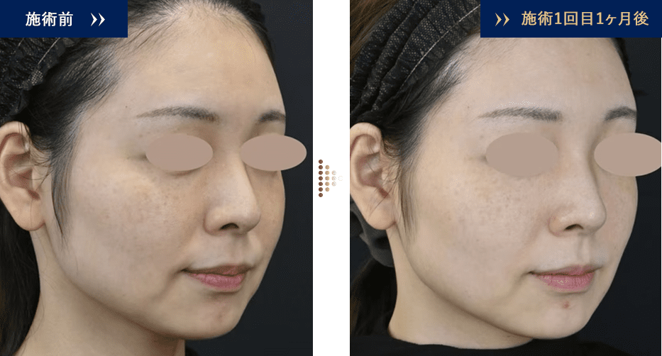 こめかみや頬のこけ感の改善を認め、フェイスラインが滑らかになり、全体的にリフトアップしています。