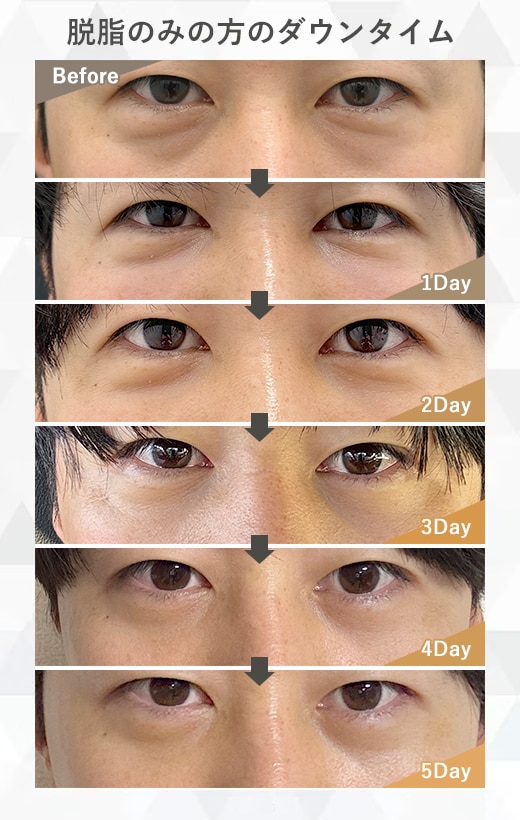 目の下のたるみや凹凸が軽度の場合は、脱脂手術のみで改善が期待できます。