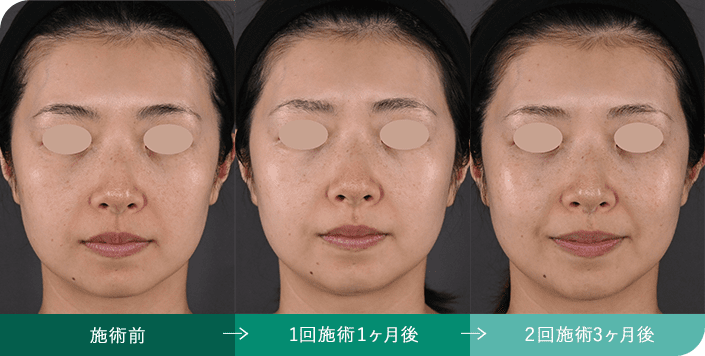 個人差はありますが、効果の持続期間は6ヶ月から9ヶ月程度が目安です。安定した効果を維持するために、最初の治療後、1ヶ月ごとに3回程度の治療を推奨しています。