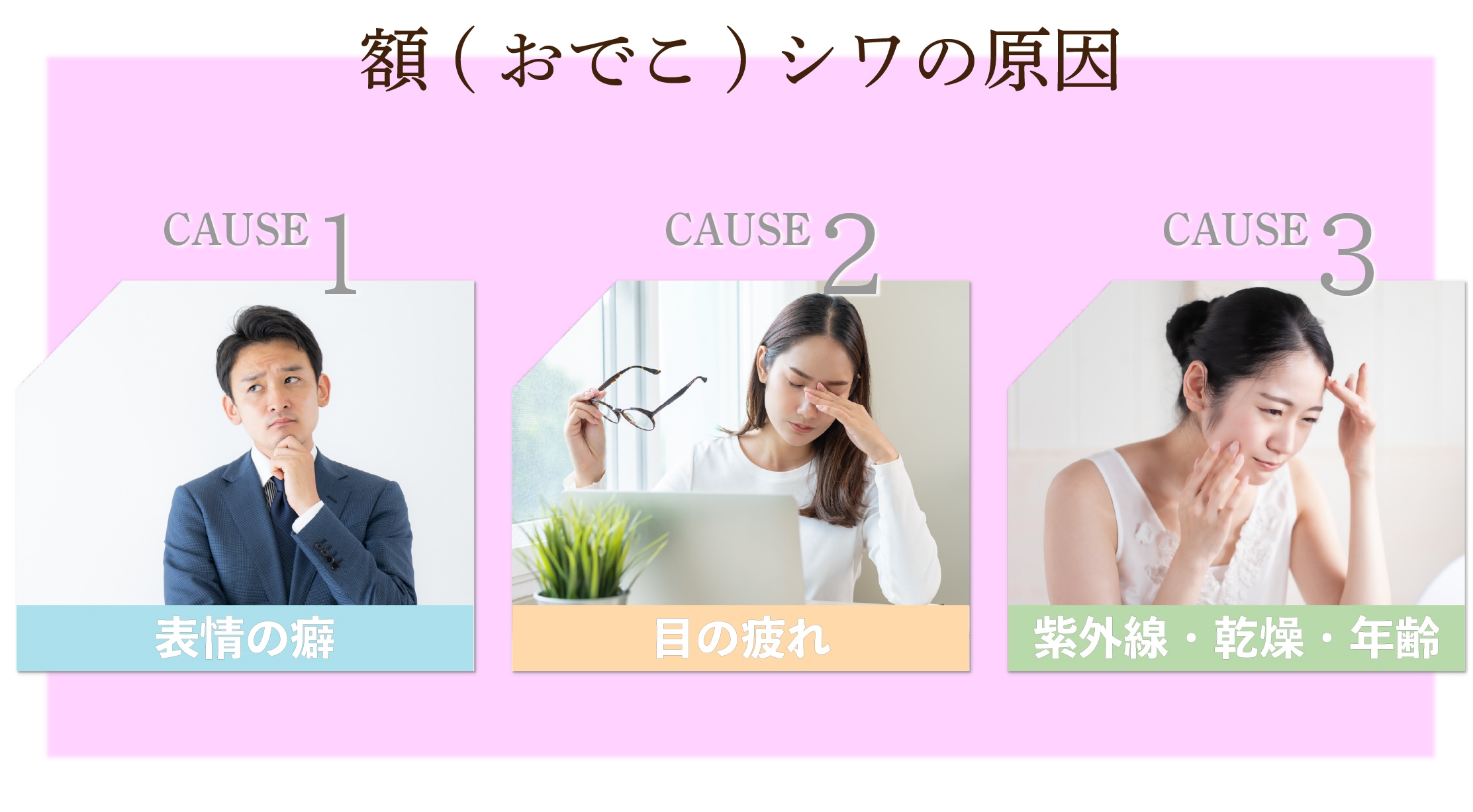 年齢とともに出てくる【おでこの表情じわ】