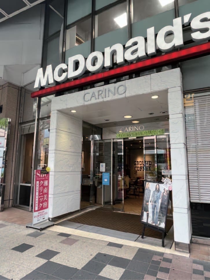 50mほど進むと右手にマクドナルドが見えてきます。(入り口前に湘南美容クリニックの看板がございます。)