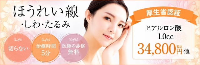 ヒアルロン酸注射は元々体内にある成分のヒアルロン酸を注入し、皮膚を膨らませ、ほうれい線やしわを改善する施術です。
