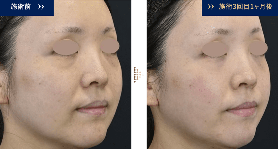 こめかみや頬のこけ感の改善を認め、フェイスラインが滑らかになり、全体的にリフトアップしています。