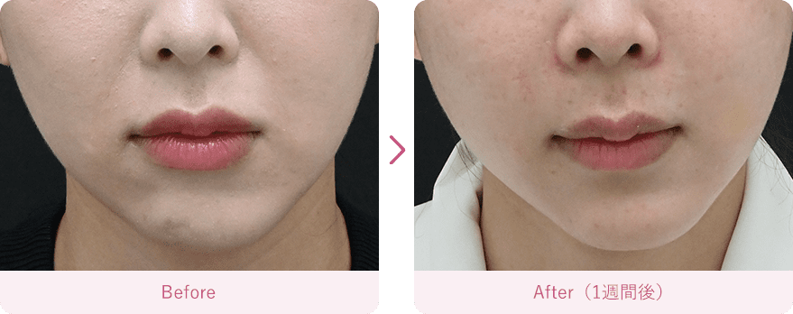 鼻~口周りに内出血が出る場合がありますが、1~2週間程度で引いていきます。