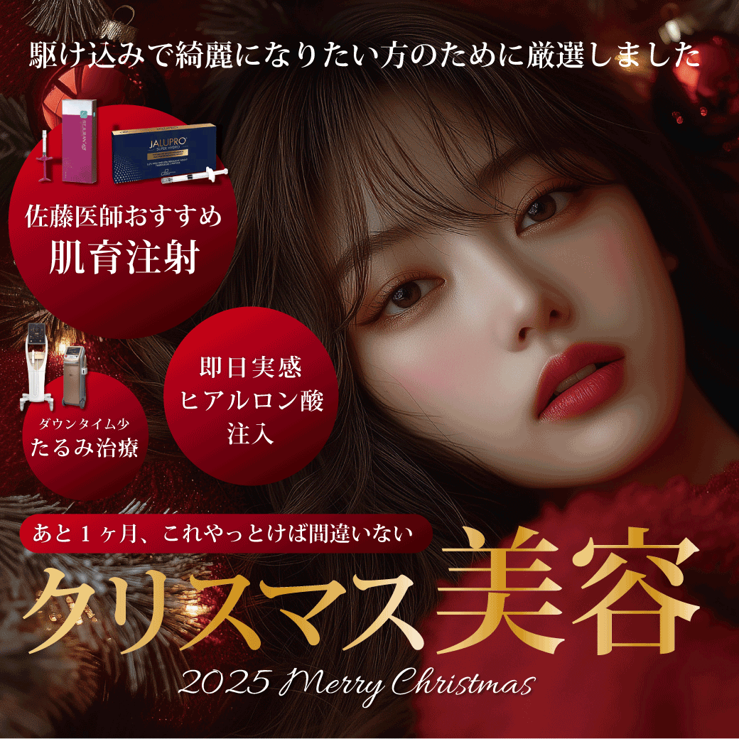 ヒアルロン酸は注入直後から効果が目に見えてわかるのが特徴です! クリスマス前の美容にピッタリ🎄