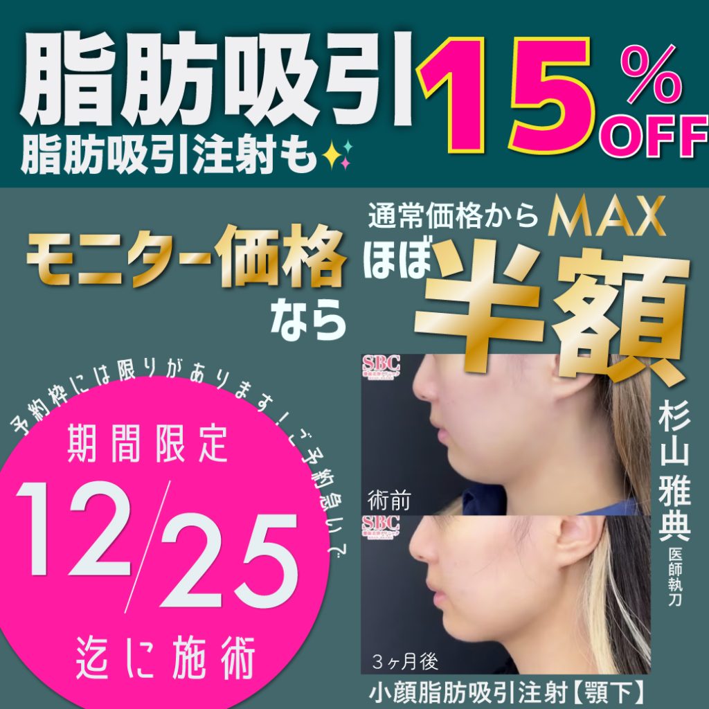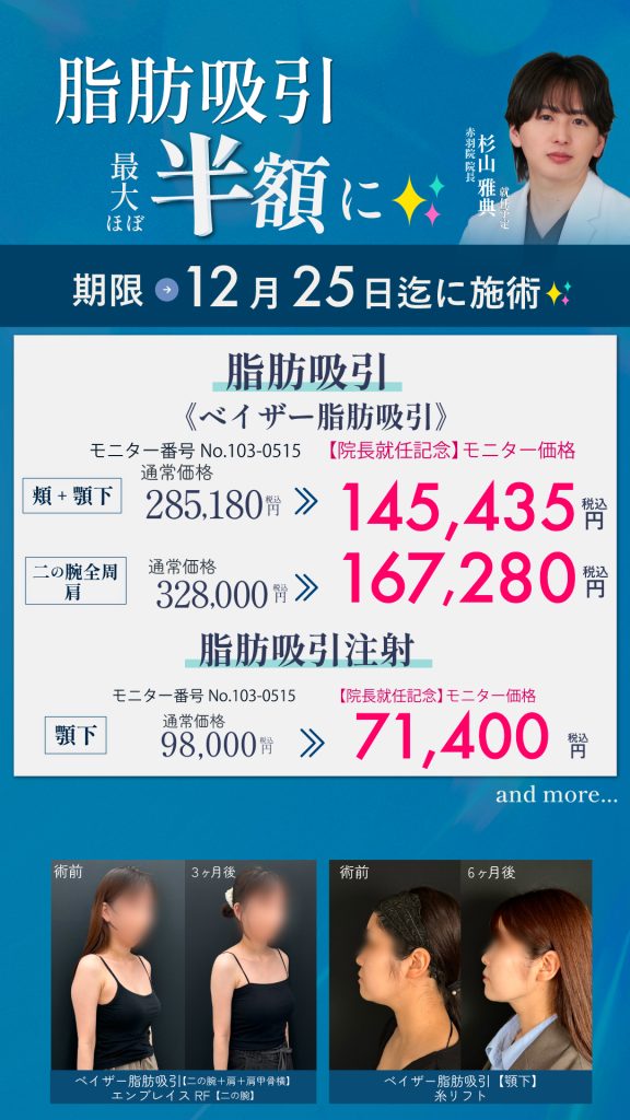 12月25日迄に施術必須‼️【まさかのMAX半額‼️】脂肪吸引が“今だけ”お得に!モニター価格からも割引可能で通常価格から(約)半額でご案内!!