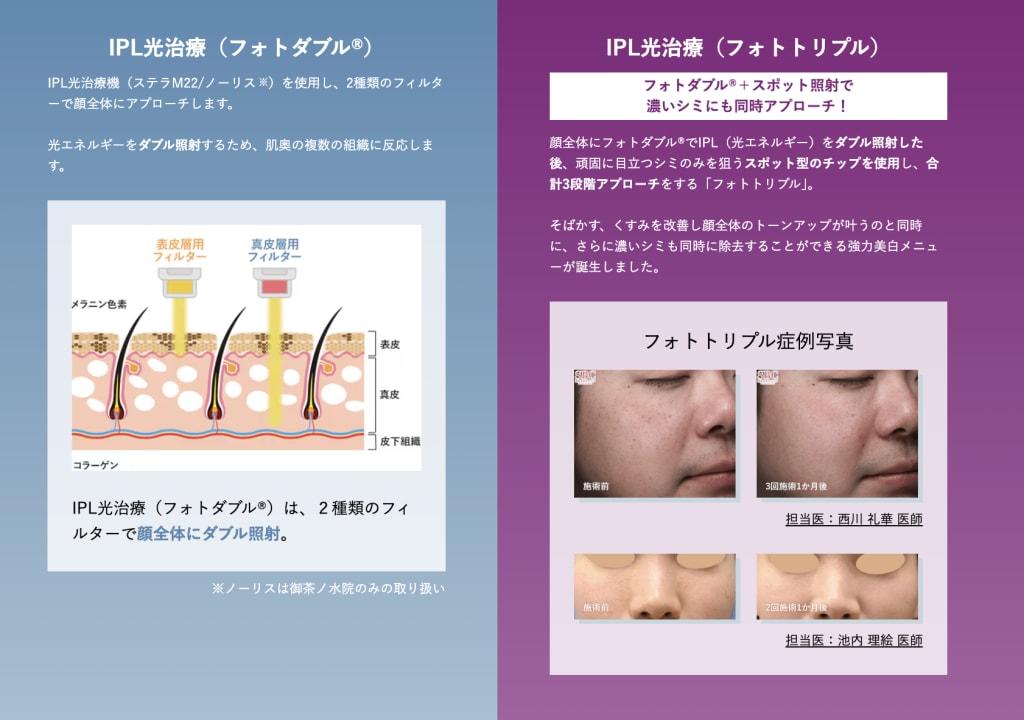 湘南のIPL光治療(フォトダブル®/フォトトリプル/フォトRF)は、厚生労働省認可の最新光治療機を使用し、化粧品では届かない肌奥に眠る色素にアプローチ