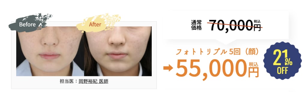 ※セット価格は【併用可能治療と同時の契約日に限ります】【レーザーコースの消化時は対象外】【他の割引と併用不可】