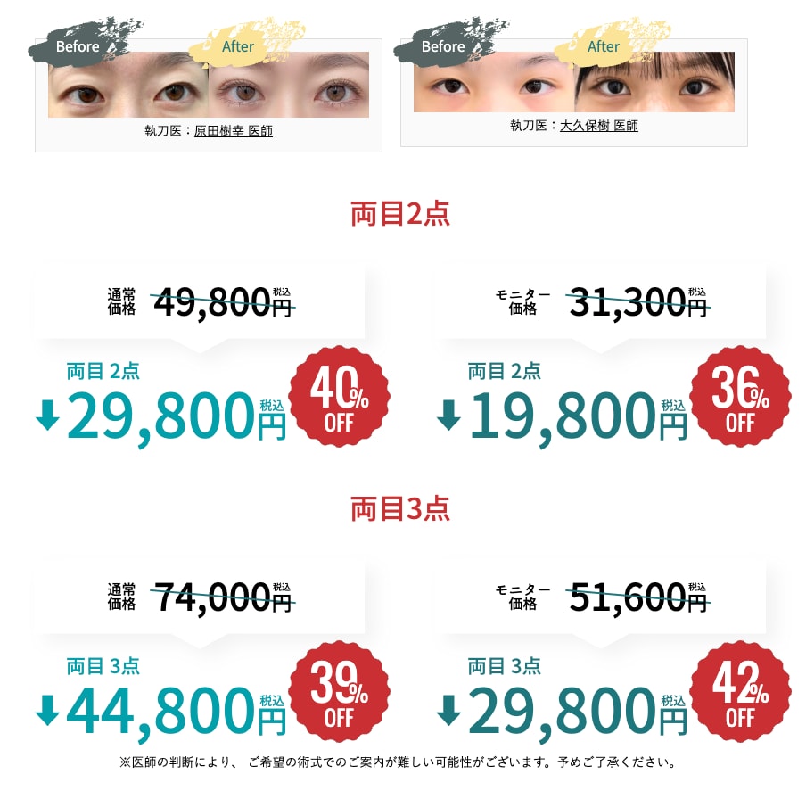 ※切開ハムラ法・アイバックリムーブ法は対象外