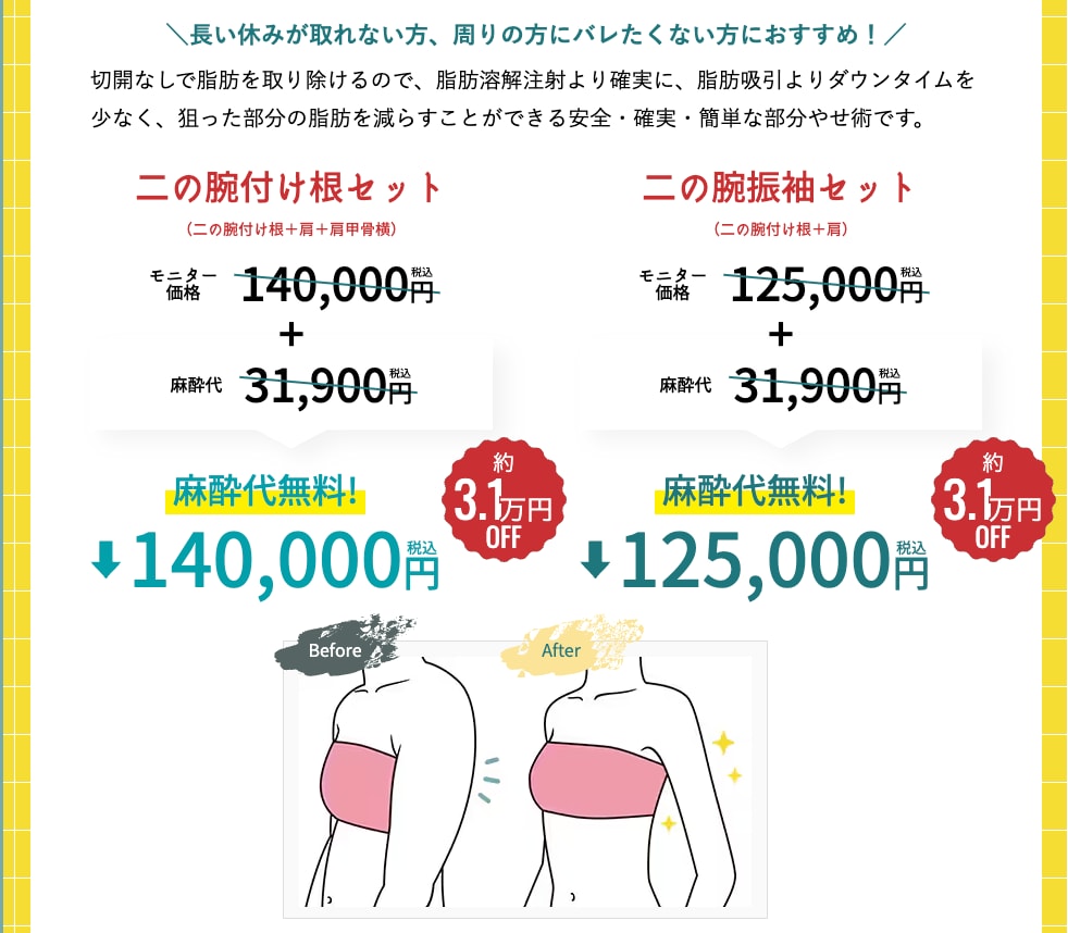 二の腕の「脂肪吸引注射」が今なら「麻酔代」がプレゼント🎁