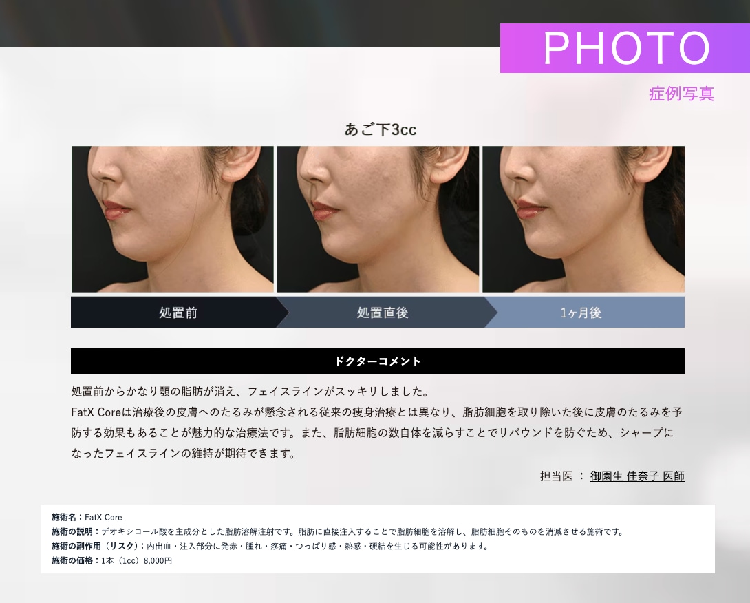 たるみ予防も叶う!最新の脂肪溶解注射「FatX Core」がお得に!!🉐