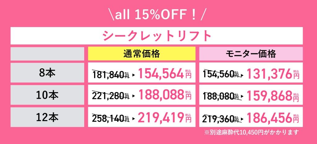 「試してみたかったけど価格が…」と悩んでいた方も、このお得な機会に糸リフトをお試しください♡