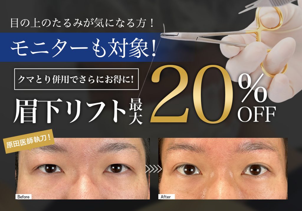 \眉下切開(目の上のたるみとり)が20%OFFキャンペーン/