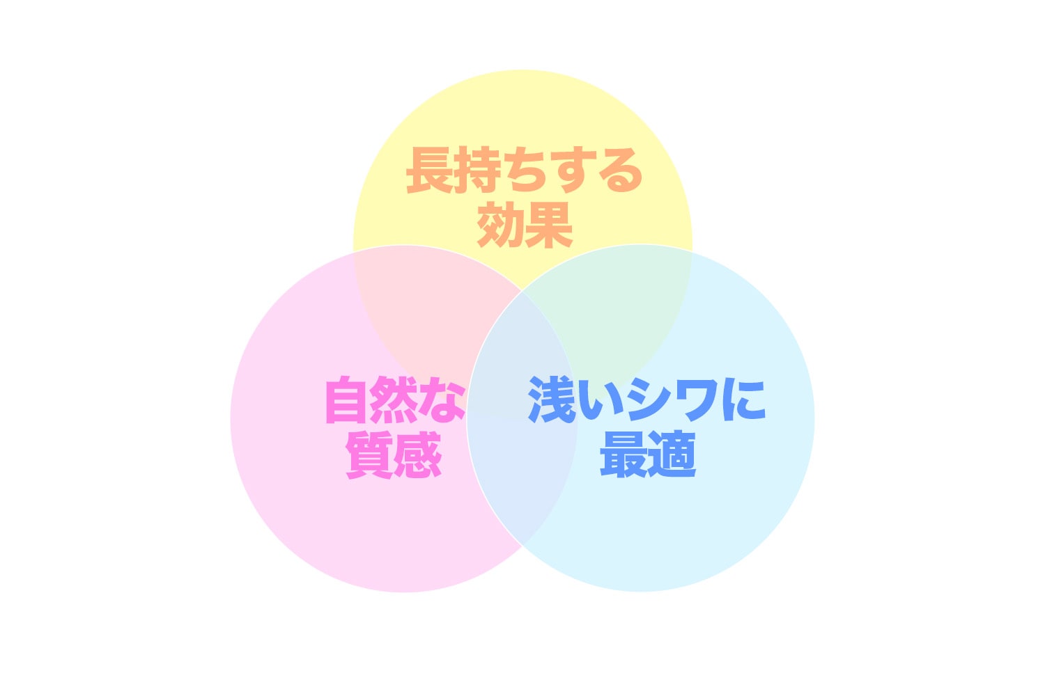 浅い位置に広がるため、輪郭の印象が自然に整い、 「やった感が少ないのに若く見える」 仕上がりを再現しやすいことが支持されています。