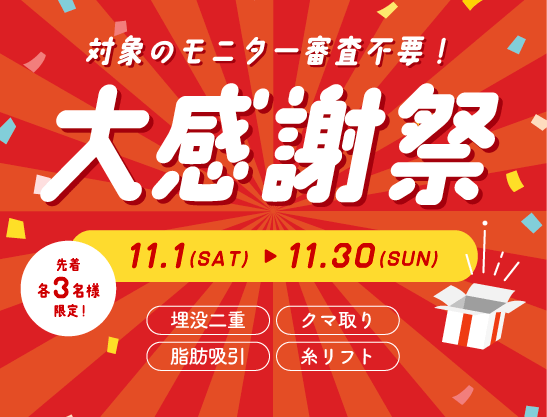クリニック案内 秋田県のクリニック 湘南美容クリニック 秋田院 特集記事 【11月限定】対象のモニターが審査不要で受けられる!大感謝祭の開催が決定しました✨