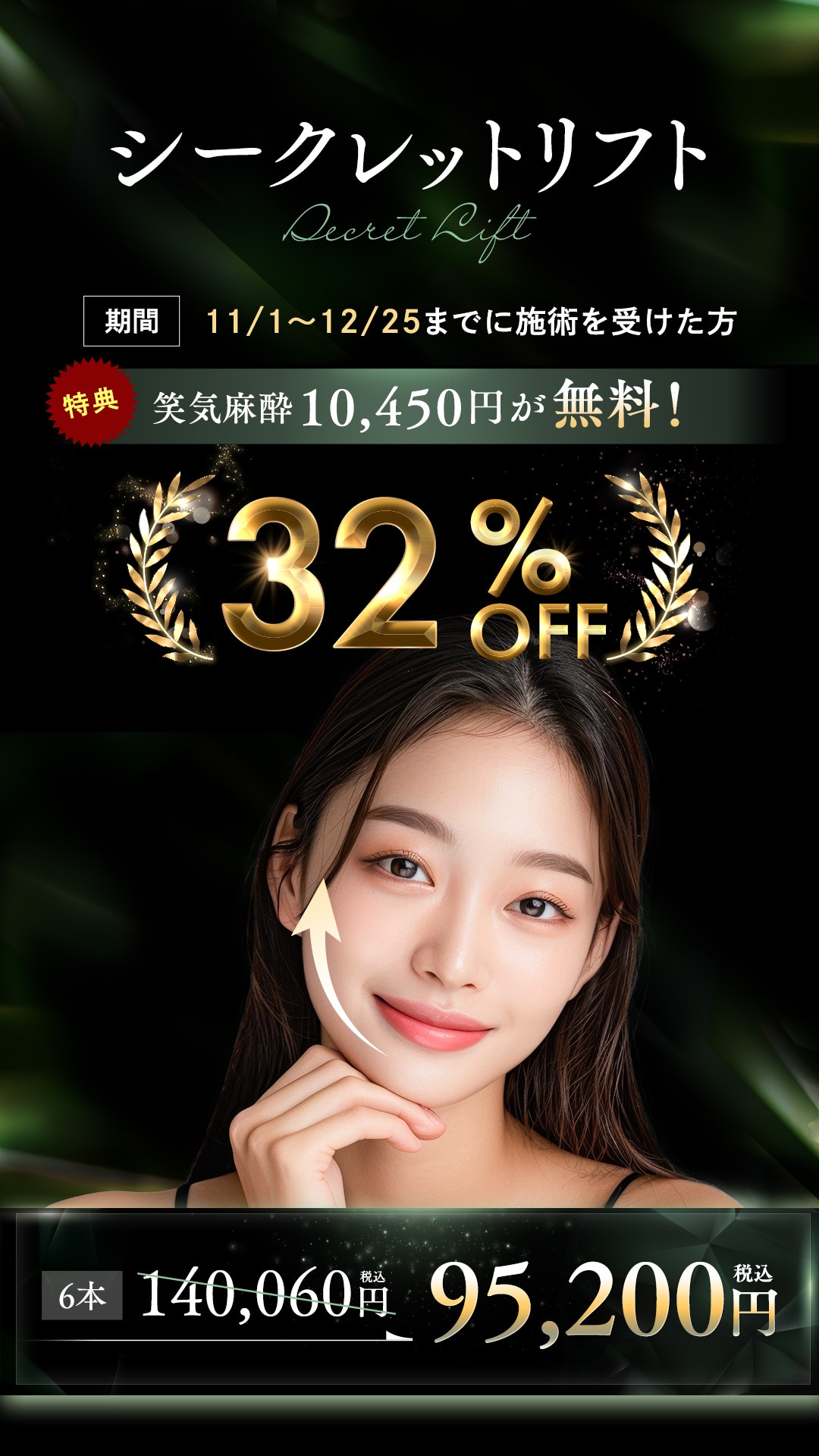 【12/25まで!最大44%OFF!】糸リフト・特別キャンペーン開催!