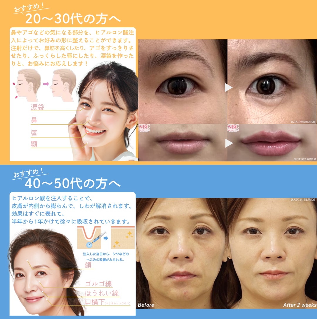 ヒアルロン酸はお悩みの部分に直接アプローチできます!さらに、お客様一人一人に合わせたカスタム施術が可能です!お気軽にドクターへご相談してください