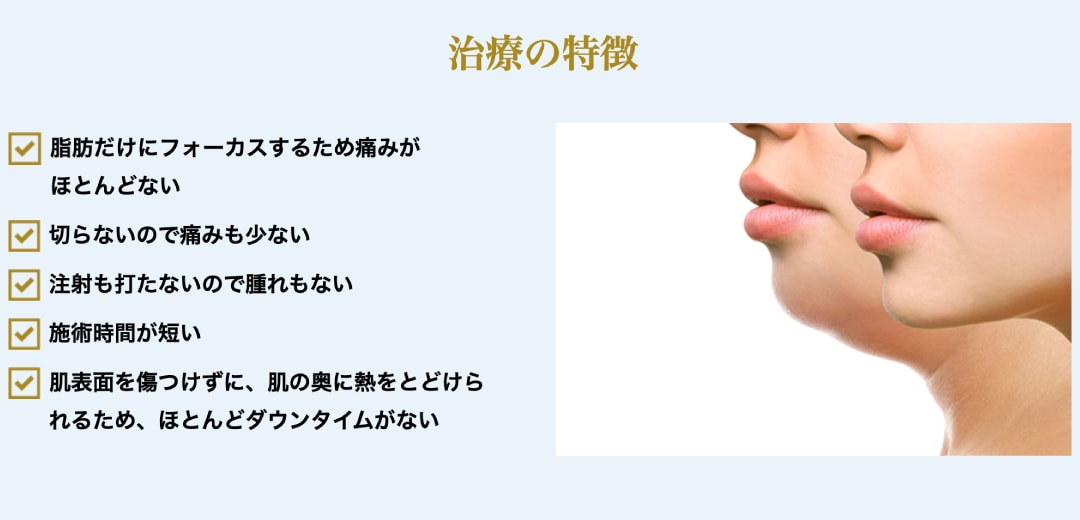 脂肪溶解メカニズムは、HIFU(高密度焦点式超音波)を顎下、フェイスラインにあてることによって、