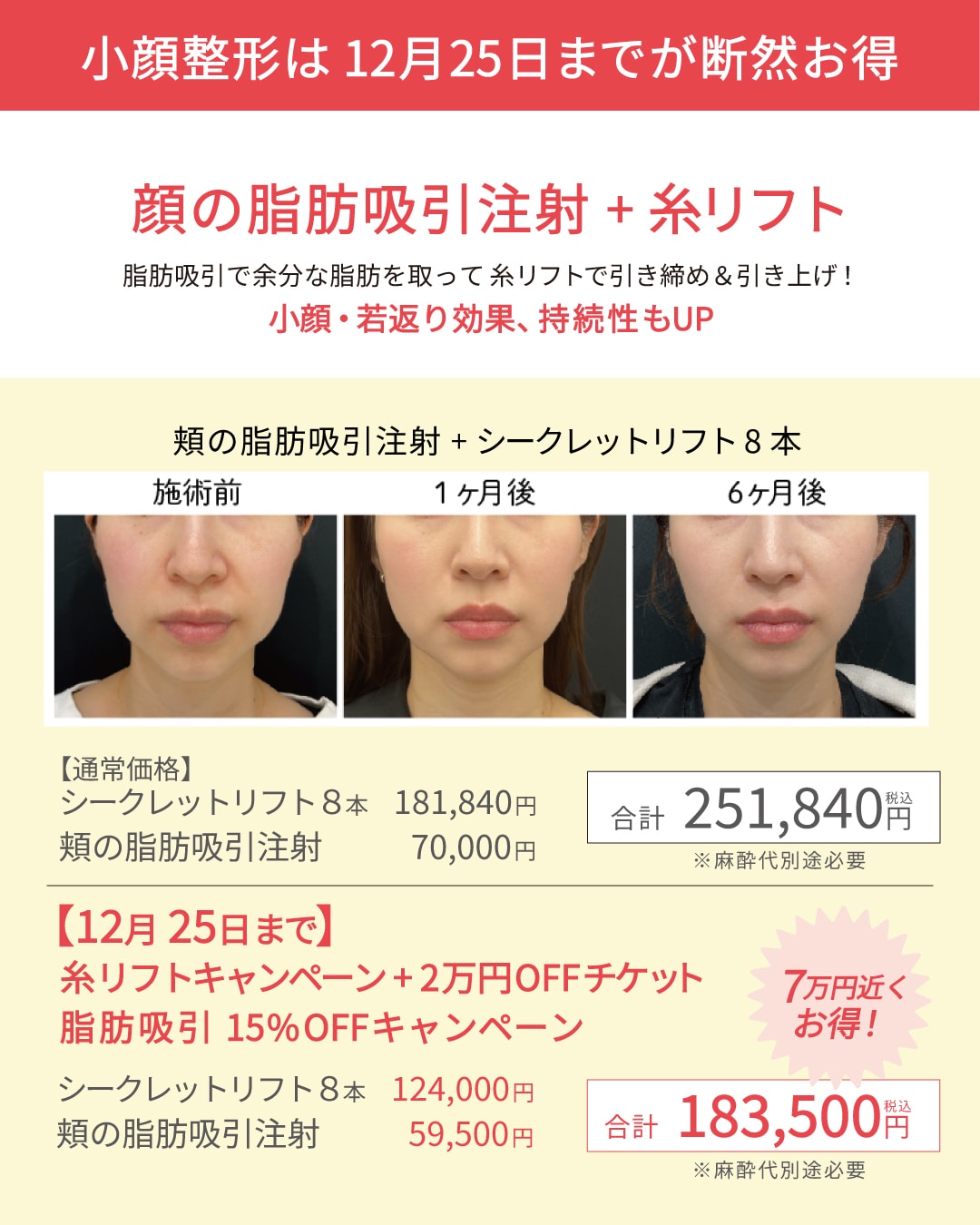 【12/25まで】糸リフト6本が29,800円~笑気麻酔も無料