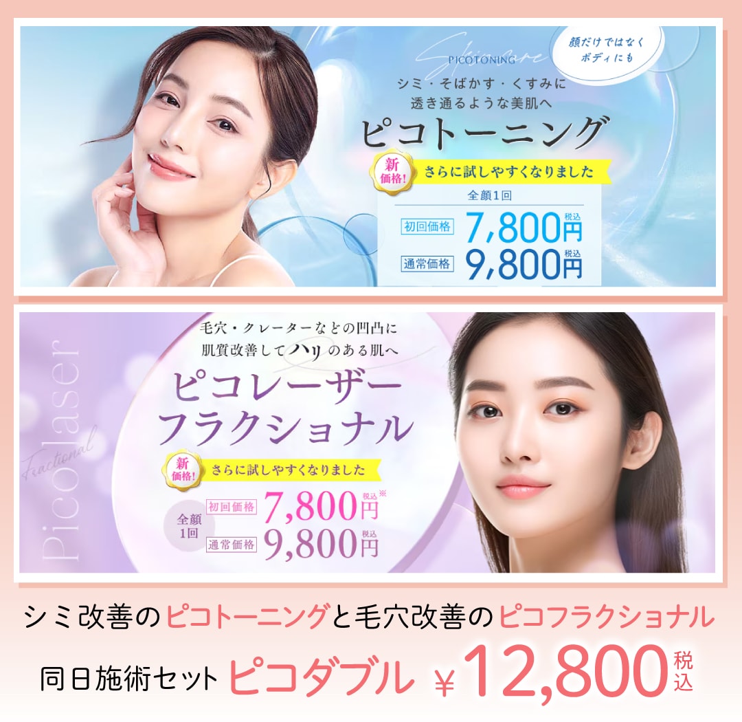 シミ改善のピコトーニングと毛穴改善のピコフラクショナルがお得なセットで更にお安く