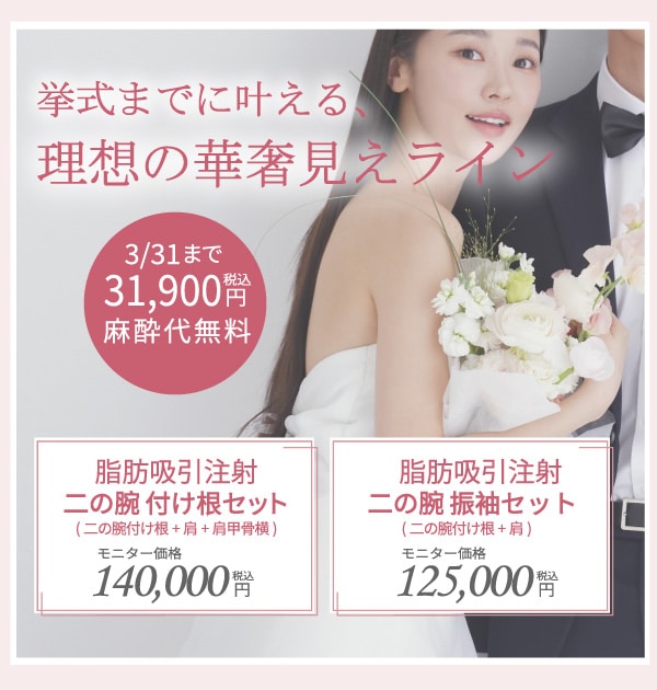 できるだけ手軽に二の腕を細くしたい方には、脂肪吸引注射の二の腕セットがおすすめです。