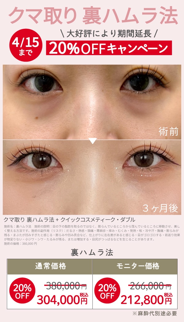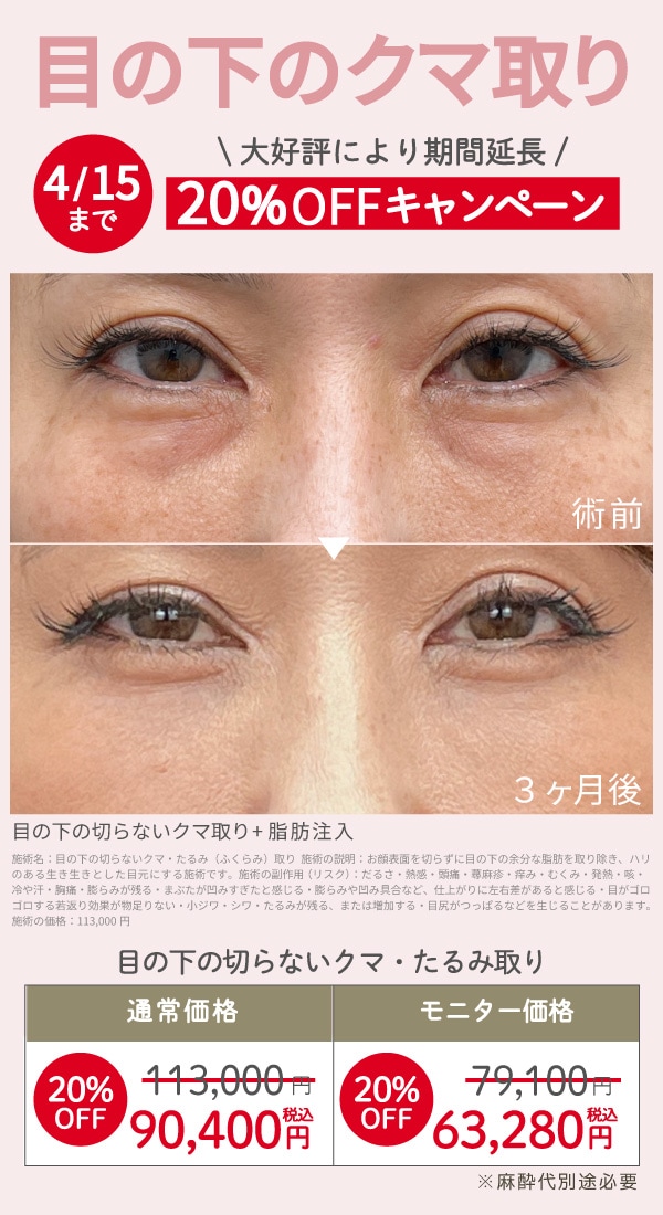 『目の下のクマ取り』20%OFF