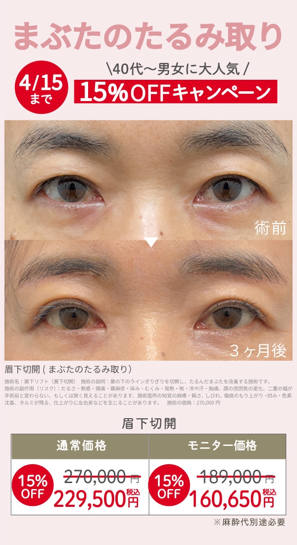 まぶたのたるみ取り『眉下切開』15%OFF