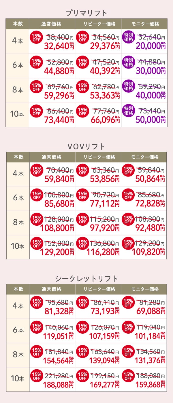 通常価格・モニター価格ともに15%OFF