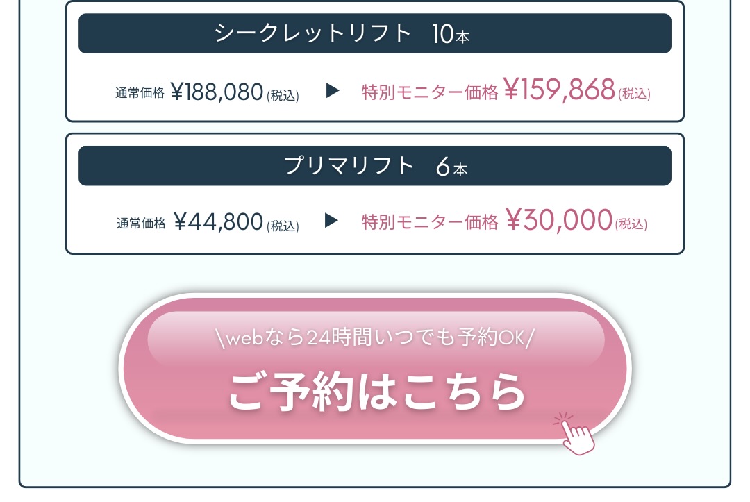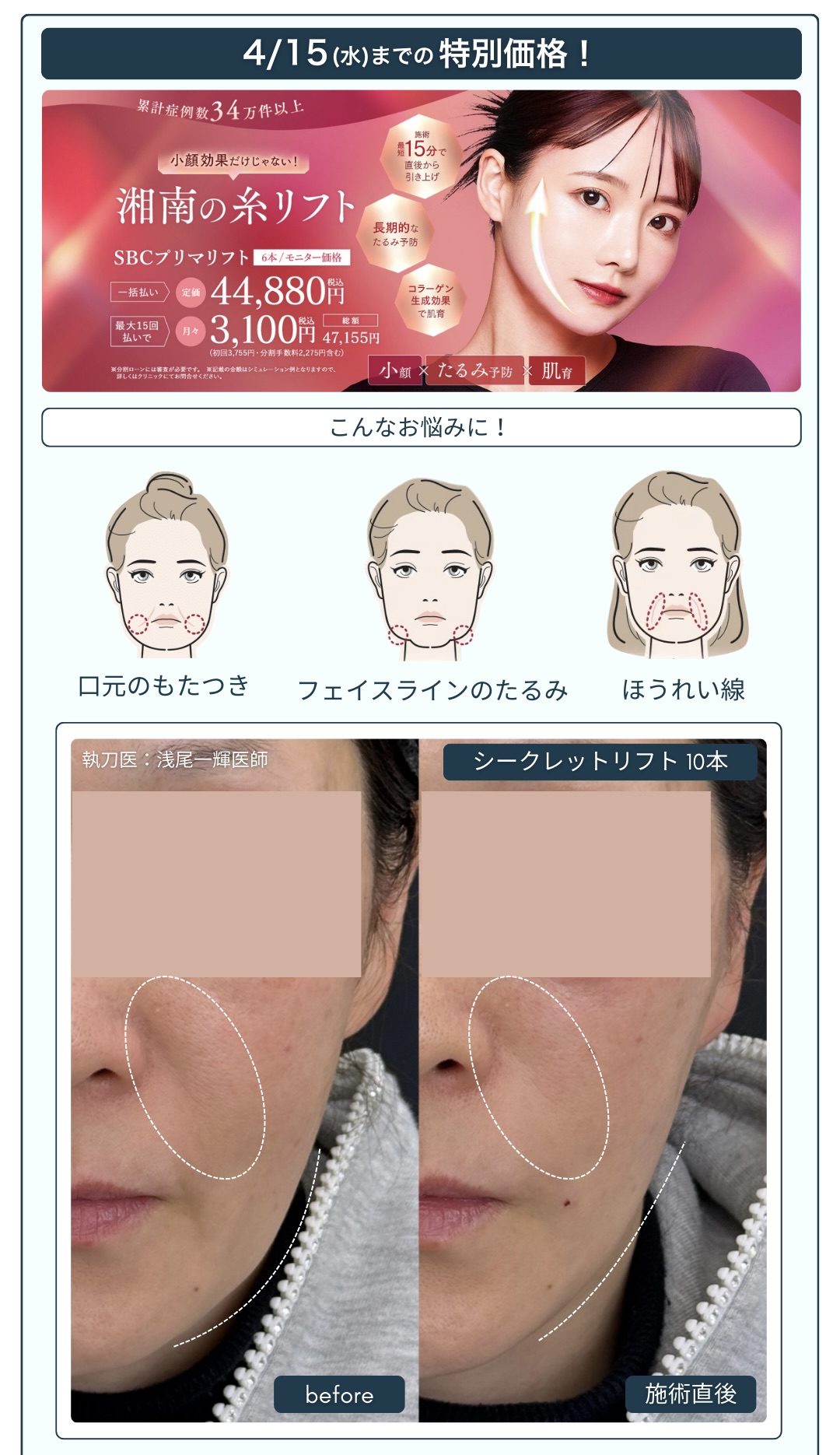 痩身、小顔治療、二重術、クマ取りなど幅広い施術を取り扱っております。