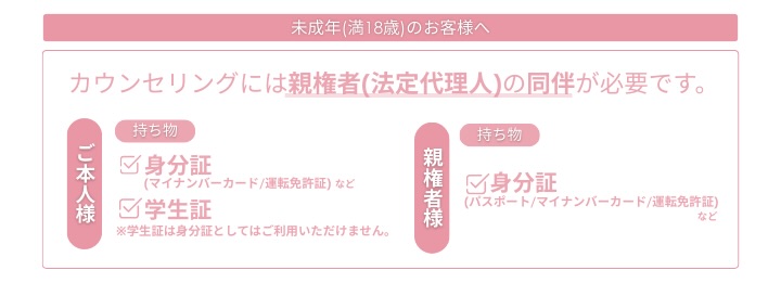 AM9:00~PM6:00(最終カウンセリング予約PM4:30まで) ※休診日:月曜・木曜 |