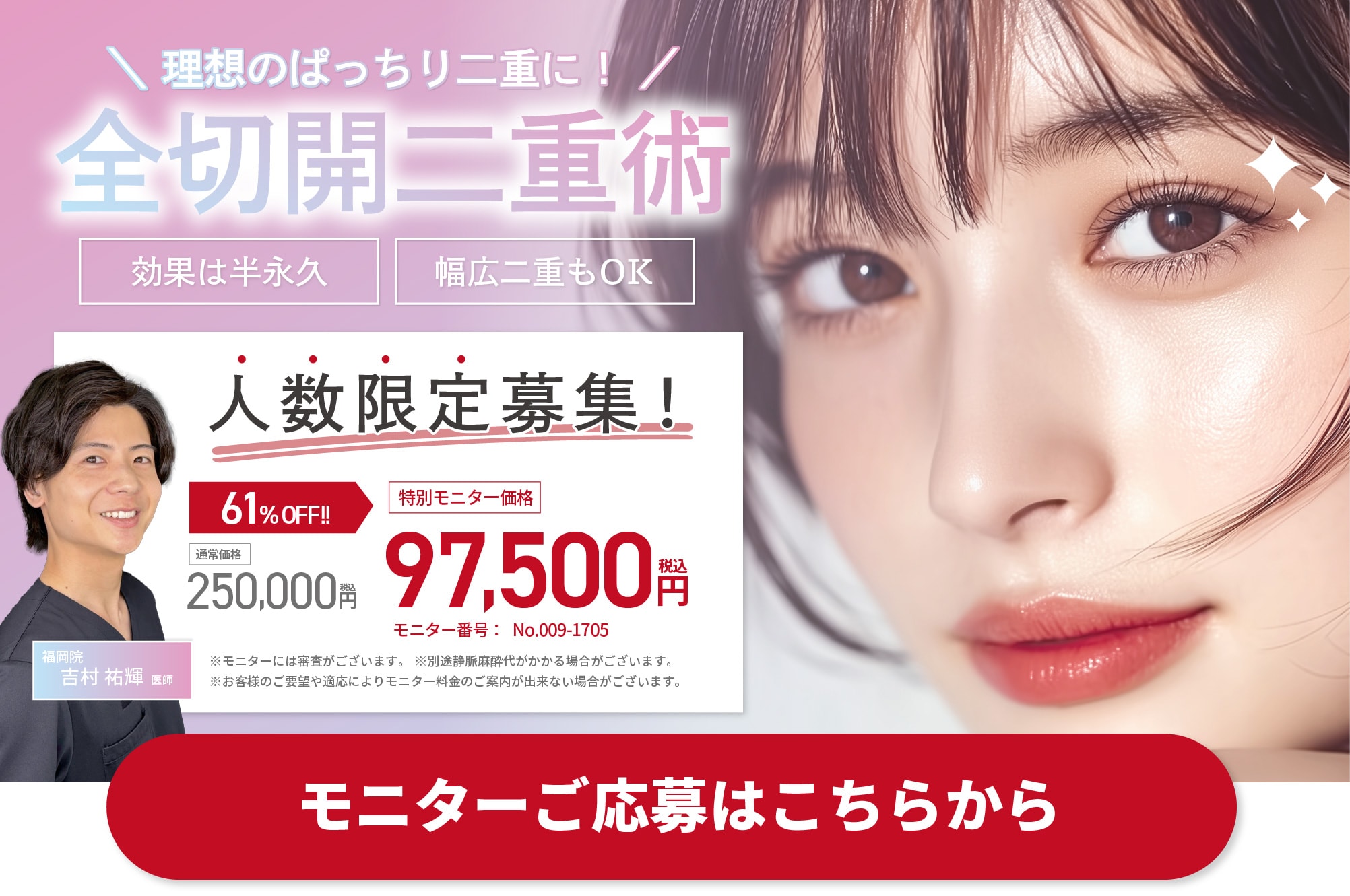 ※モニターには審査がございますのでお客様のご要望や適応によりモニター価格でのご案内ができない場合がございます。予めご了承ください。