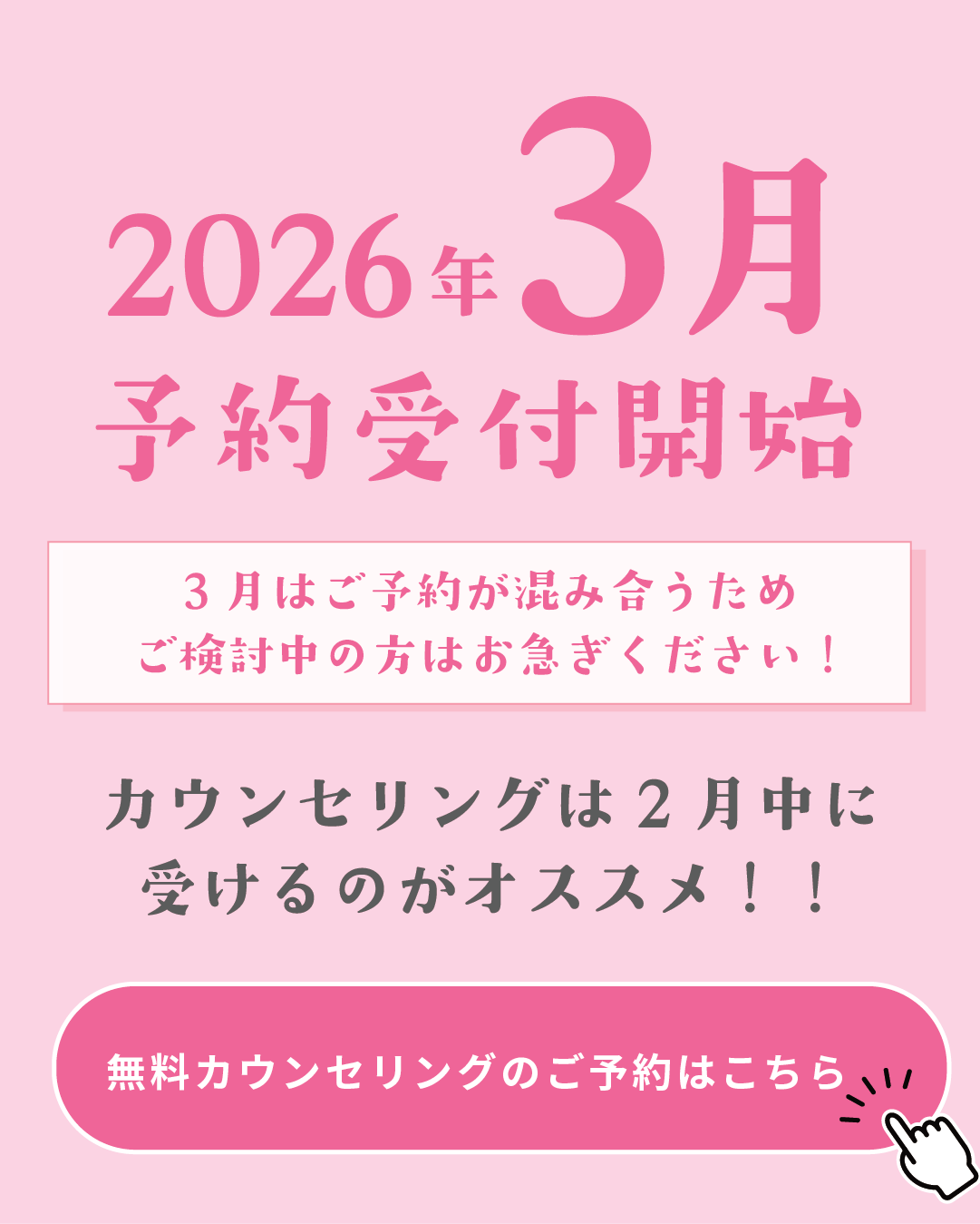 手術をご希望の方は2月中にカウンセリングにお越しいただき、事前に手術枠を押さえることを推奨しております。