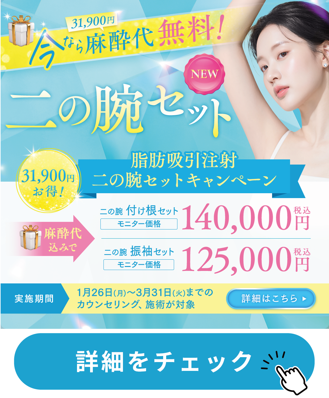 二の腕の脂肪吸引注射が新しいセットメニューで今だけお得に受けられる✨