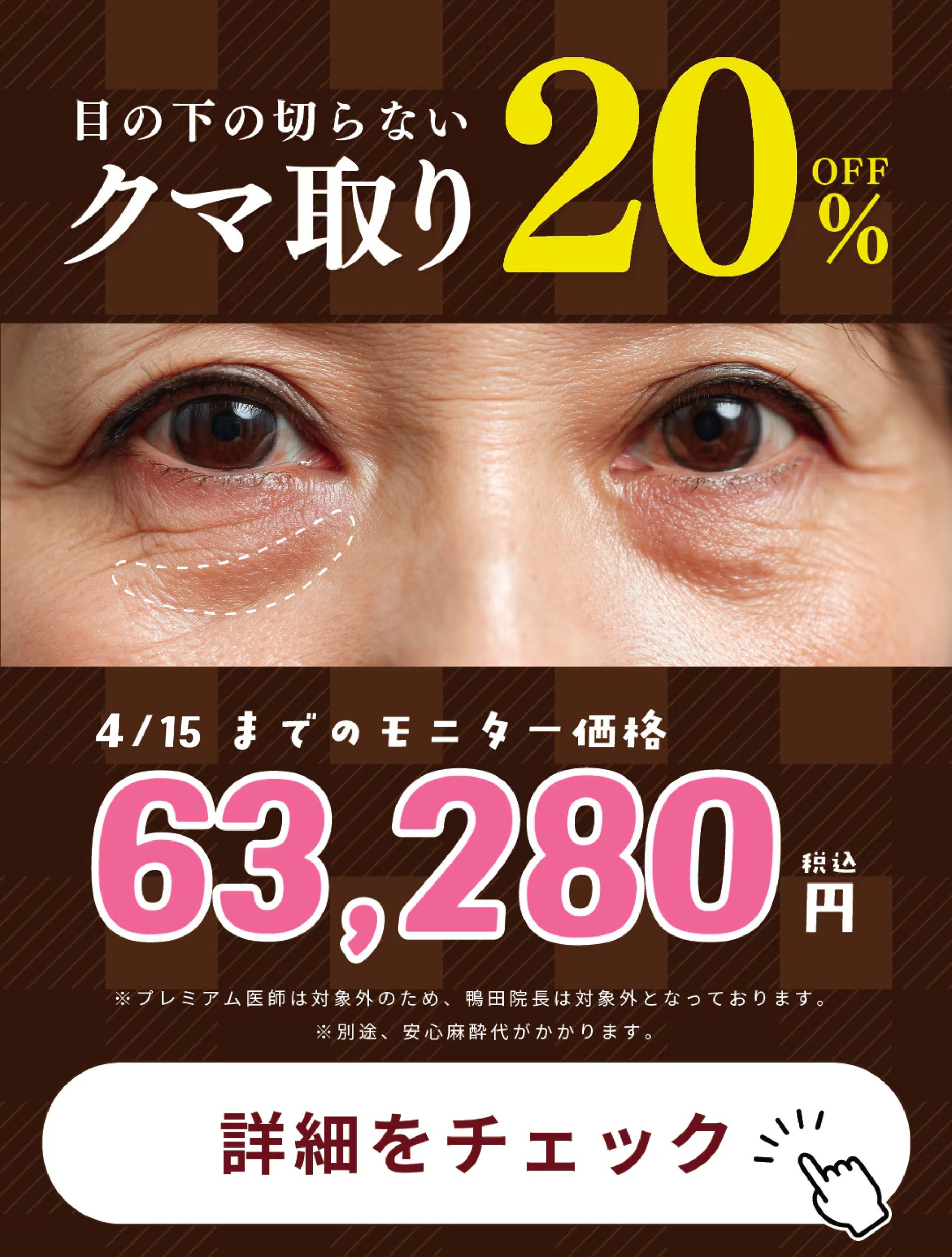 目の下の切らないクマ取りが20%OFF😳