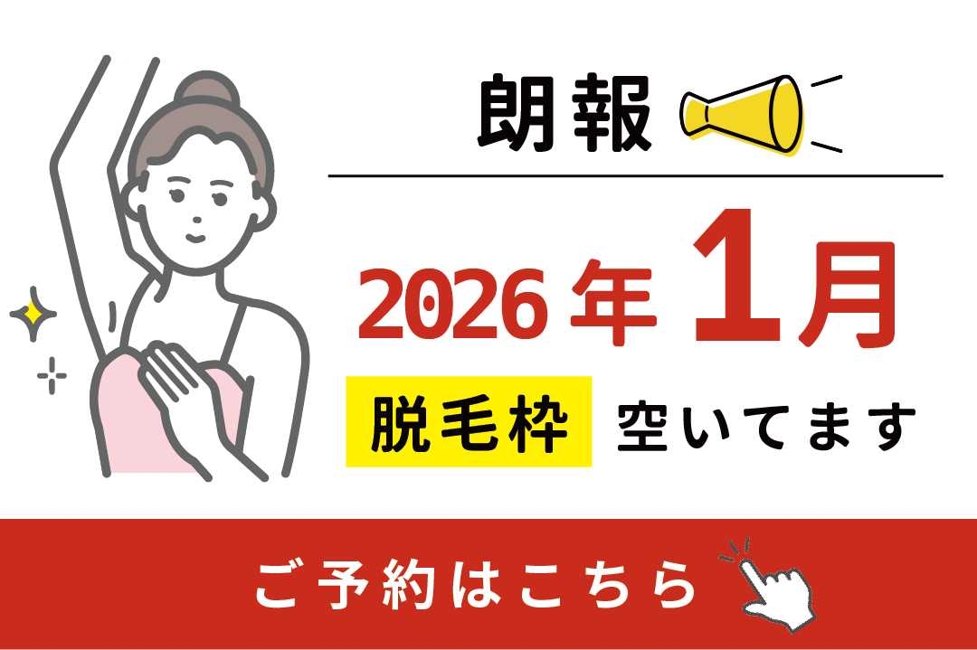 この度、2026年1月は比較的脱毛枠に余裕があり、ご希望の日時を承りやすい状況となっております。