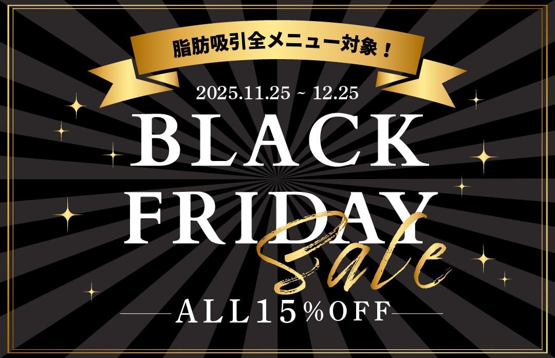 年に一度のビッグイベント「ブラックフライデー」に合わせて、なんと脂肪吸引の全メニューを対象とした15%OFFキャンペーンを実施いたします!