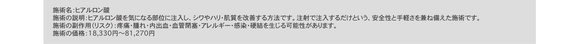 持続期間は約6ヶ月なので定期的なメンテナンスが必要ですが、お手頃価格で受けられることで人気のヒアルロン酸です。