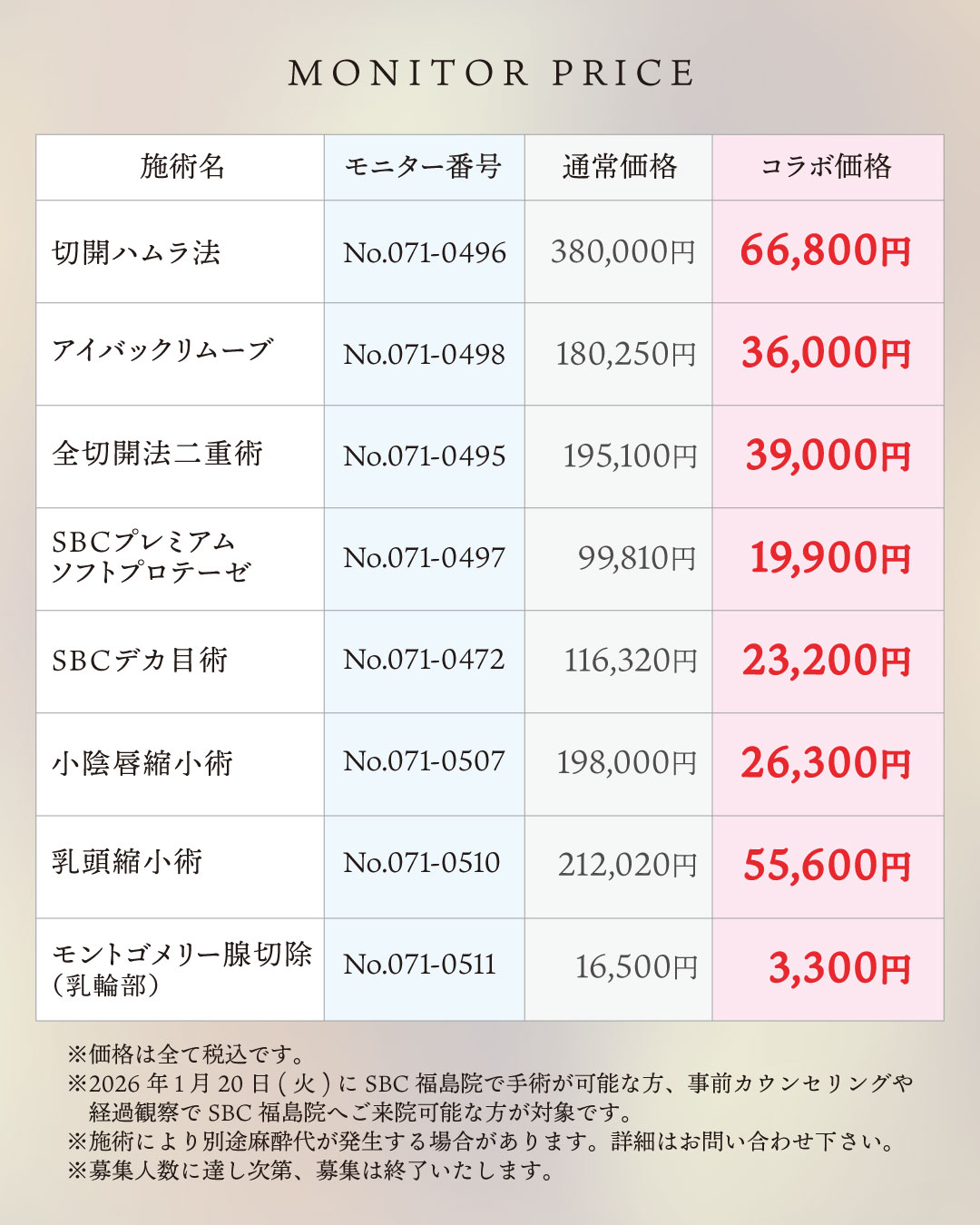 通常価格より最大約87%OFFのお得すぎるモニターを募集中です!