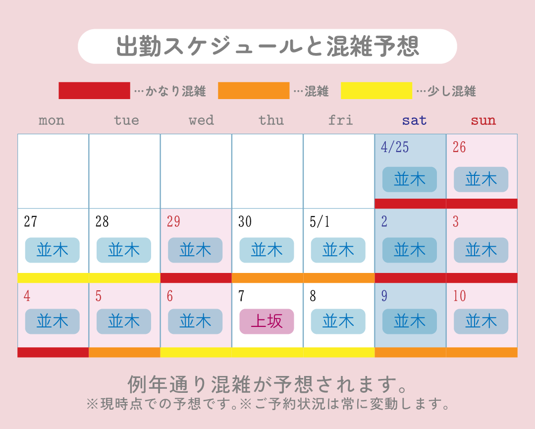 繁忙期のため例年ご予約が込み合う時期です。