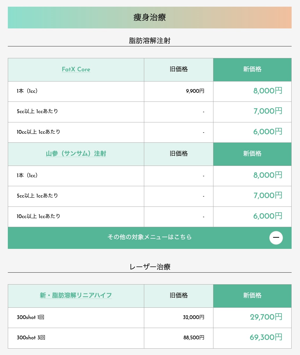 大幅な価格改定や、初回限定の特別価格など、シワ治療・シミ治療などの美肌施術をご用意いたしましたので、ぜひご覧ください✨