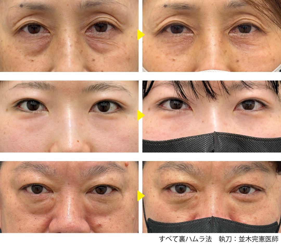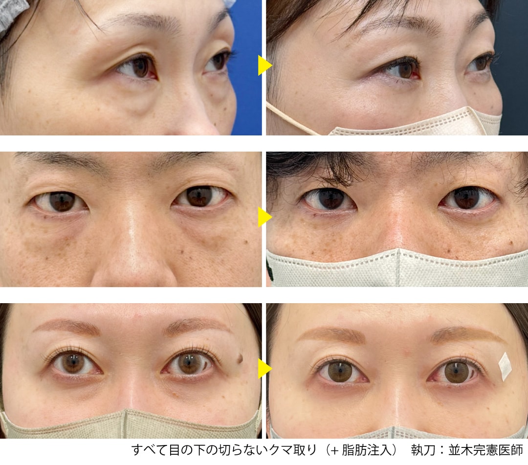 30代以降の方は個人差がありますが、クマを取った部分に脂肪を注入しハリを出させることで、若々しい目元へ改善できる場合が多くございます。