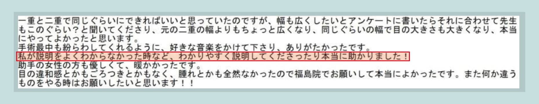 目元のお悩みは先生自身も経験されていたからこそ親身になって寄り添います。