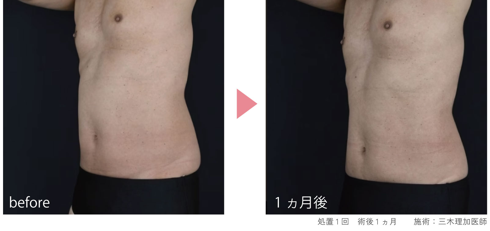 コラーゲン等の収縮の効果により、約1か月程でより引き締まり等の効果をご実感いただけます。