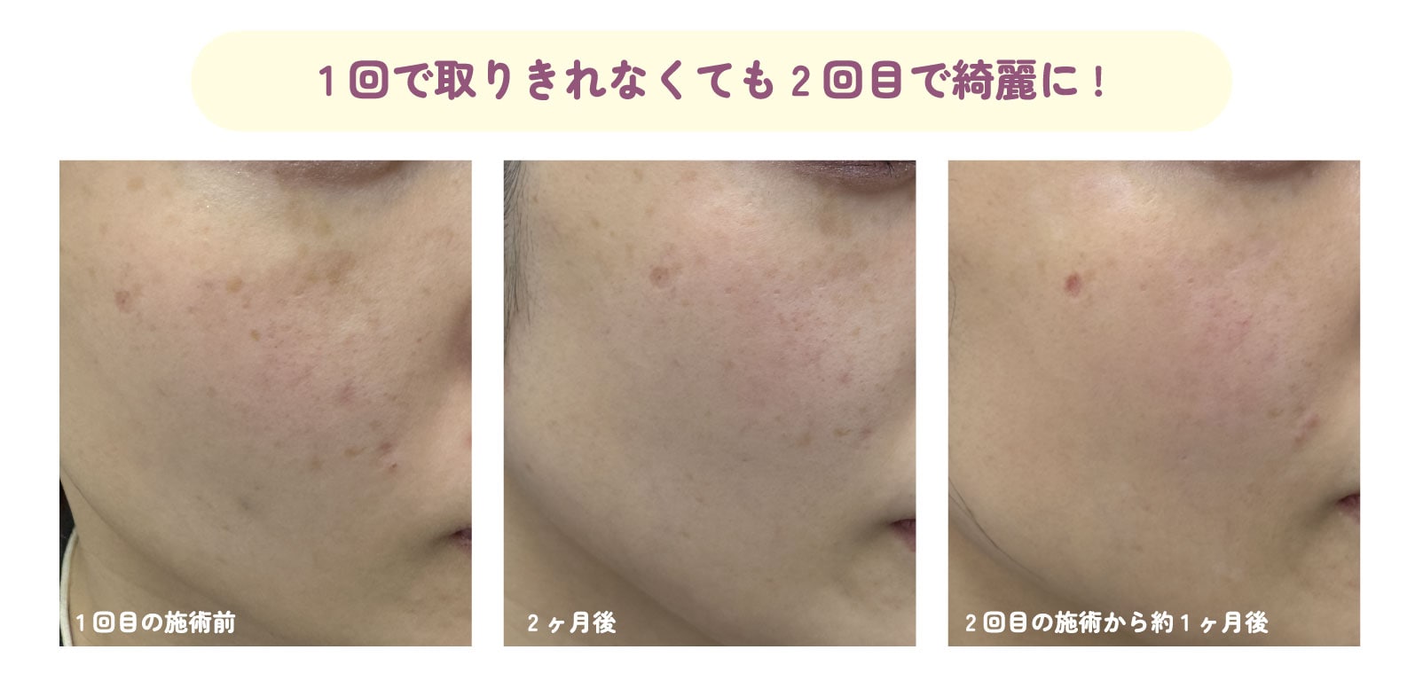 レーザーによる炎症後色素沈着により、一時的にシミが濃く、大きく見えることがあります。