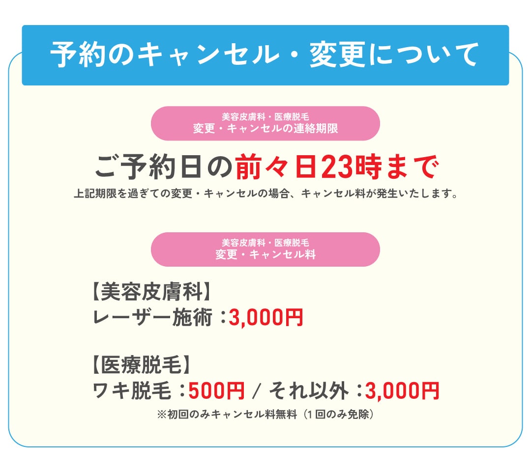 キャンセルや変更の場合は、なるべく早くクリニックへご連絡を!