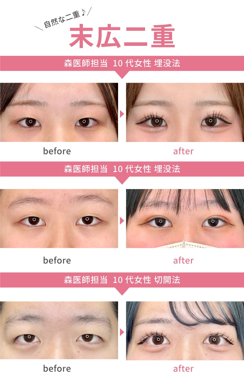 長年の経験と研ぎ澄まされたセンスを持つ森医師だからこそ、お客様の魅力を最大限に引き出す、繊細で美しい二重をご提供できるのです。
