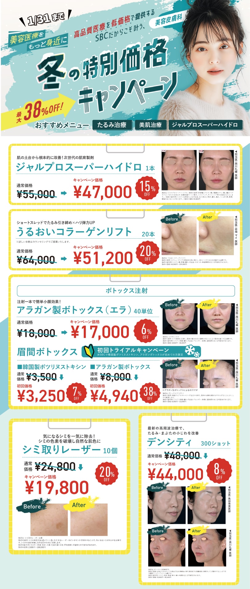 ・ジャルプロ、デンシティ、シミ取りなど人気施術が年始から大値下げ!!