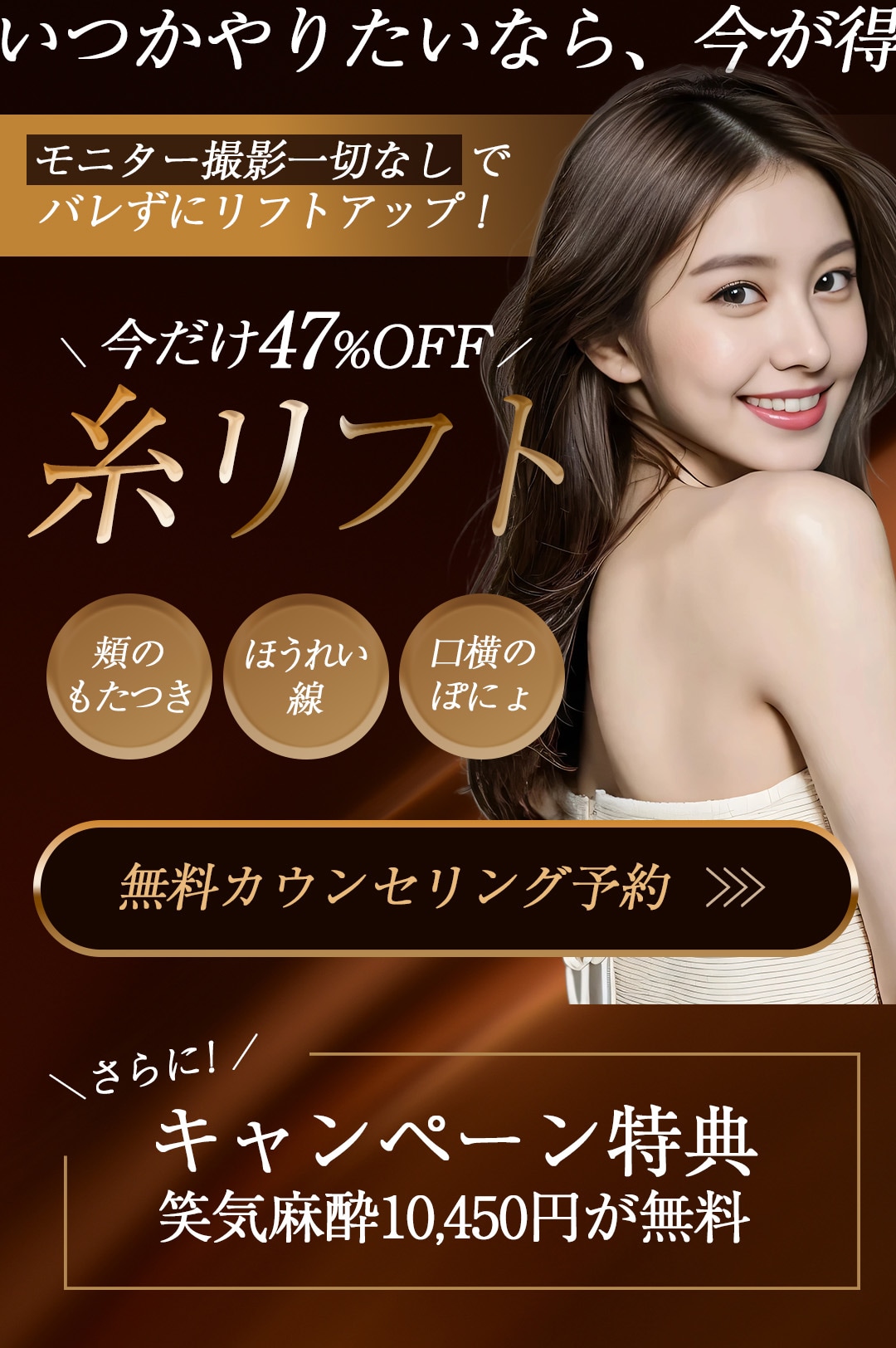 湘南美容クリニック二子玉川院では、二重・目の下のたるみ取り・眉下切開・糸リフトなどの「目元・若返り整形」、医療ハイフ・美容注射・プロファイロなどの「美容皮膚科最先端治療」他、医療脱毛、お客様一人一人に合わせたオーダメイドの施術を叶えるレーザー治療も各種取り揃えております!