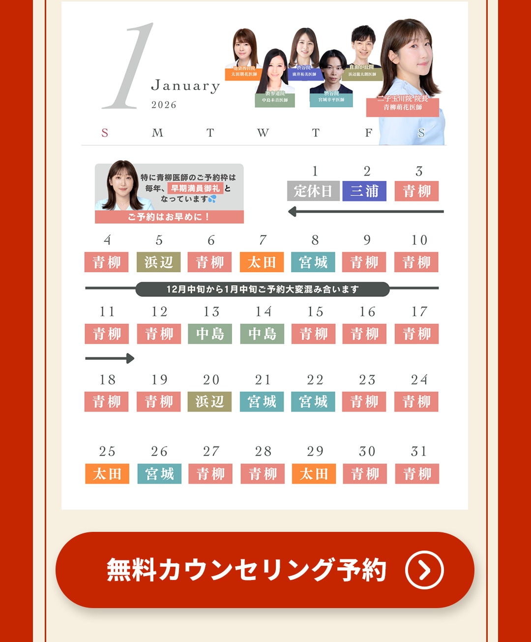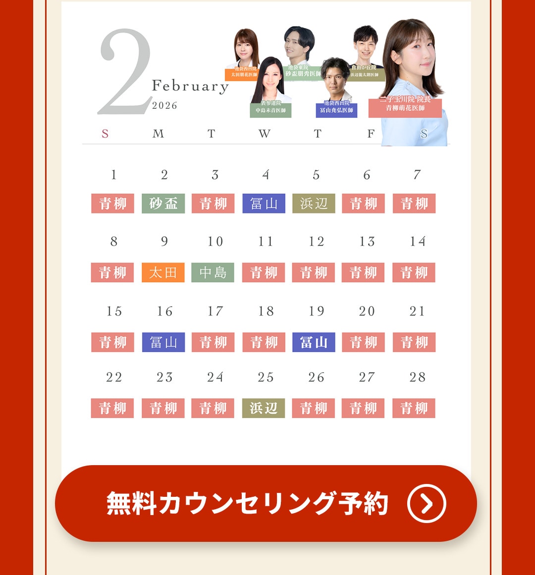【診療時間】AM9:00~PM6:00 【営業日】 土・日・祝も毎日営業※予約制 ※ ※2025年3月より営業時間が変更となりました |